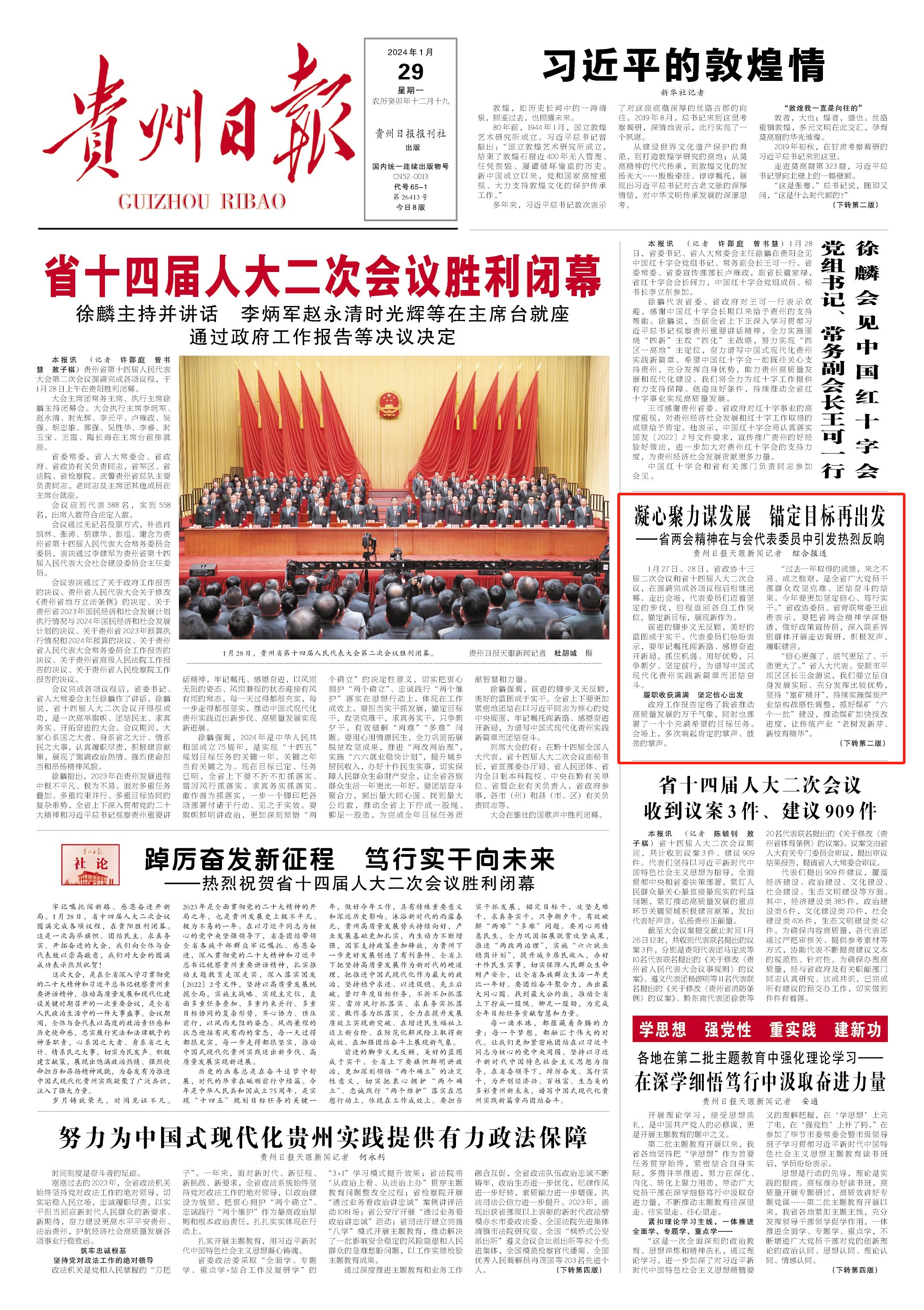 前進(jìn)的腳步義無反顧,美好的藍(lán)圖成于實(shí)干。代表委員們紛紛表示,要牢記囑托闖新路、感恩奮進(jìn)開新局,抓住機(jī)遇、用好優(yōu)勢,只爭朝夕、堅(jiān)定前行,為譜寫中國式現(xiàn)代化貴州實(shí)踐新篇章而團(tuán)結(jié)奮斗。