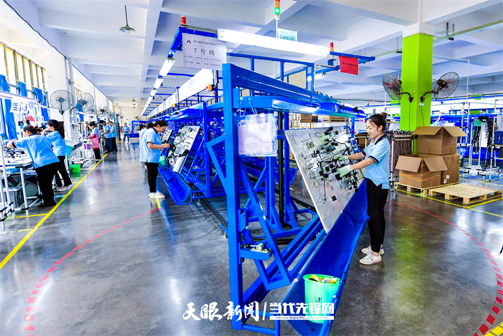 道真自治縣上玉工業(yè)園區(qū)貴州順創(chuàng)電器有限公司,生產(chǎn)線上的工人忙碌有序作業(yè)。貴州日報(bào)天眼新聞?dòng)浾?陳慧 攝